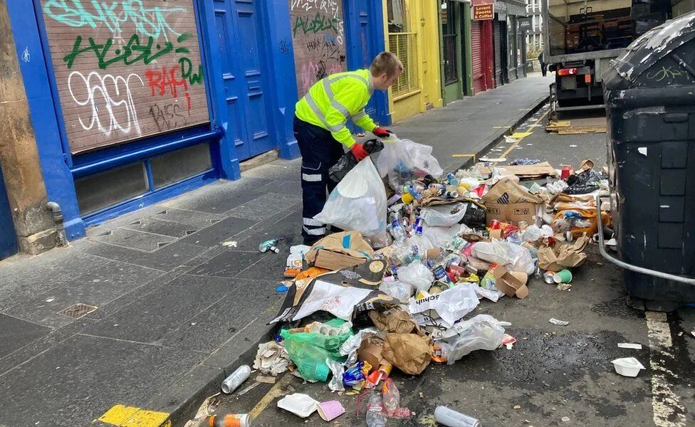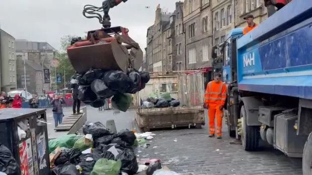 c。爱丁堡垃圾清理开始,苏格兰垃圾工人下周将继续罢工