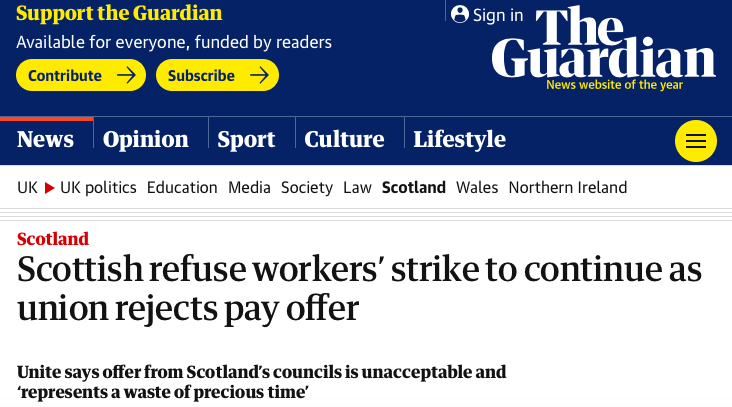 在Unite工会拒绝了地方政府的最新提议后,苏格兰大部分地区的垃圾工人已决定延长原定于本周结束的大罢工至下周!