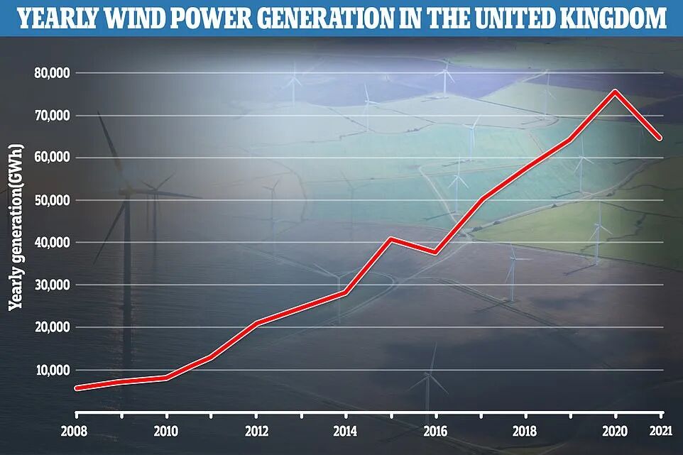 英国年风力发电变化曲线 | 图片来源Daily Mail