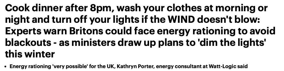 咨询公司Watt-Logic的能源专家Kathryn Porter称,数以百万计的英国人“非常有可能”被要求在今年冬天限制能源使用,以避免停电,尽管早前外交大臣Liz Truss绝对排除了这一点。