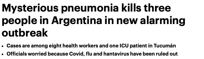a。阿根廷暴发不明原因肺炎,已有3人死亡