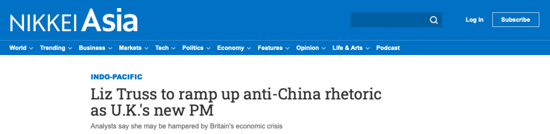 就在首相结果公布前几天,Liz Truss表示,如果成为首相,将重启外交综合评估,将中国首次列为所谓“国家安全威胁”。