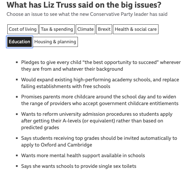 Liz Truss在赢得保守党领袖竞选后发表了讲话:这是“经历过最长的求职面试之一,但当选为保守党领袖是一种荣誉。感谢保守党成员对我的信任“。