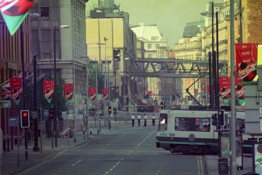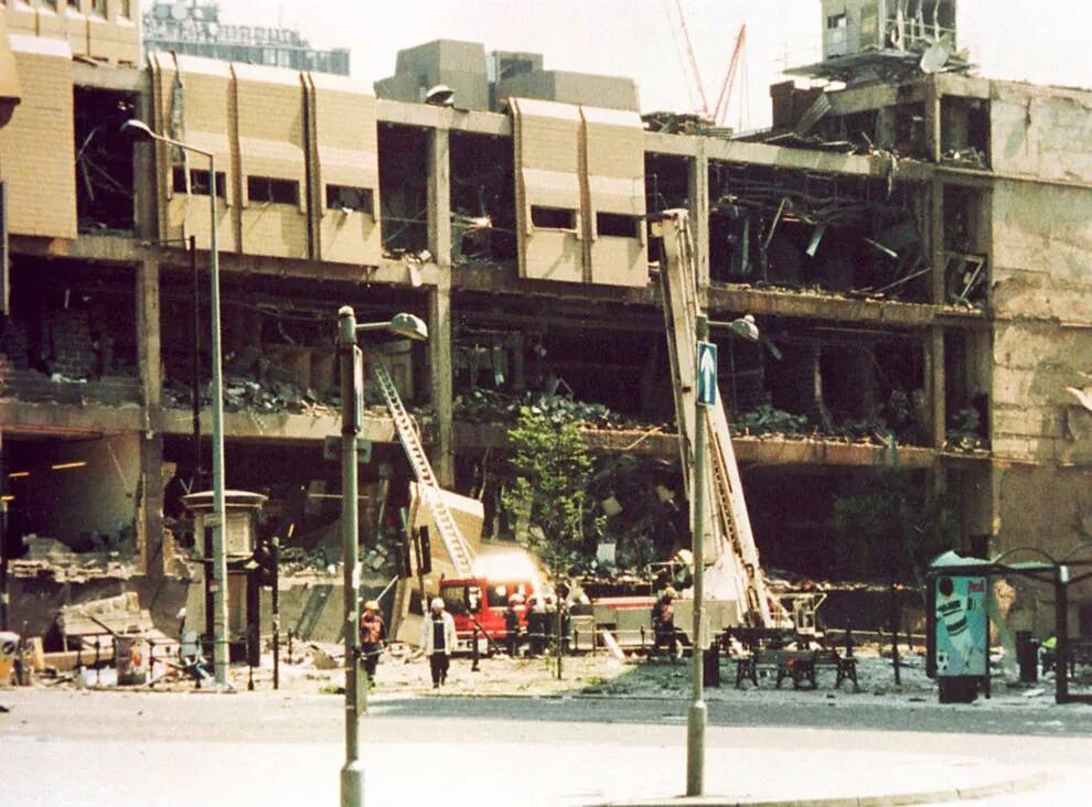 1996年6月15日,装满了重达3,300磅(1,600公斤)炸弹的汽车在曼彻斯特市中心爆炸,当时英格兰正在举办1996欧洲足球锦标赛。