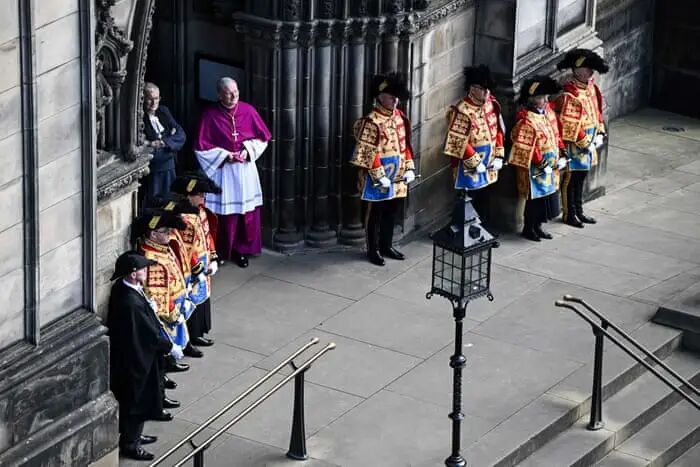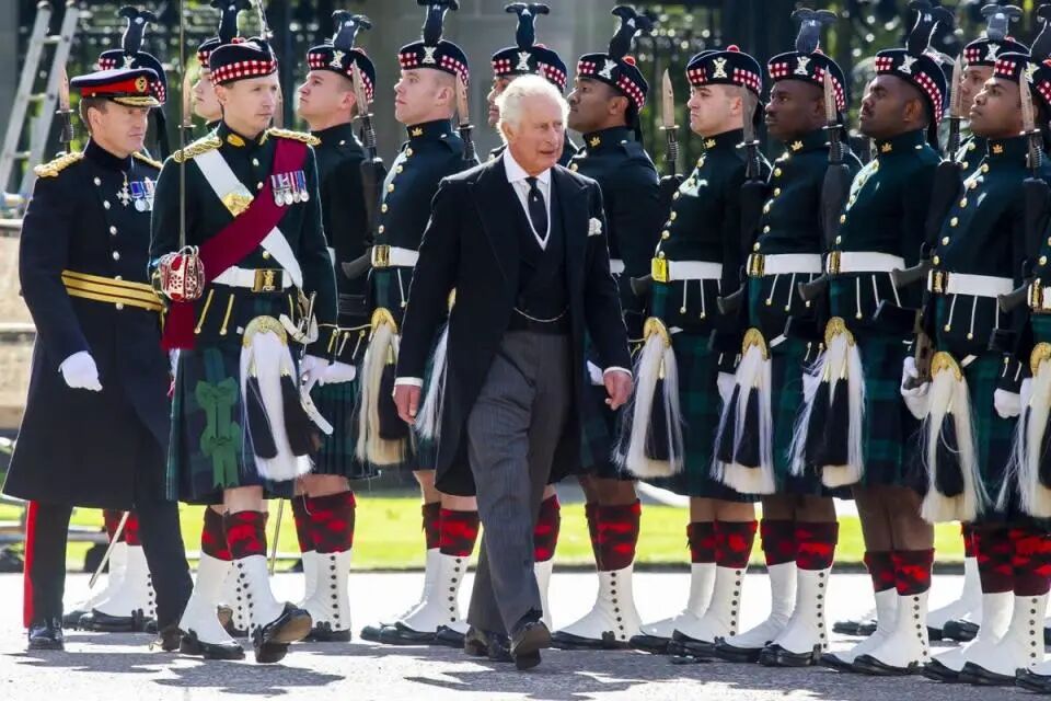 灵车的两侧是由苏格兰皇家军团和苏格兰国王护卫队组成的护卫队。