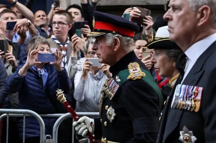 并参加下午在爱丁堡举行的女王灵柩游行,随游行队伍共同护送女王灵柩前往圣吉尔斯大教堂。