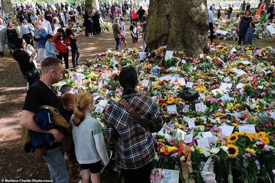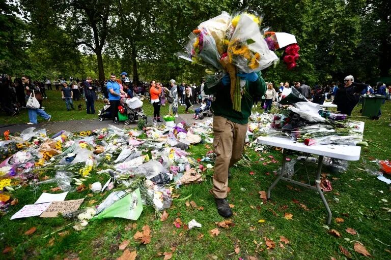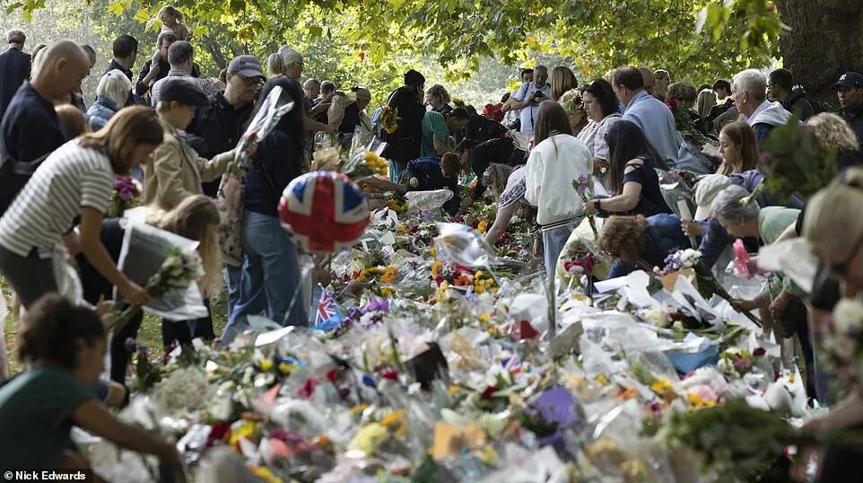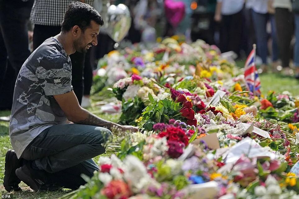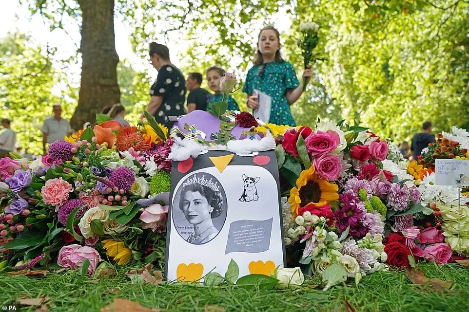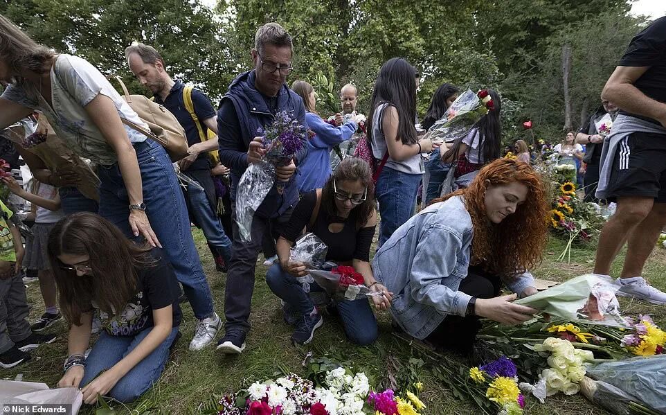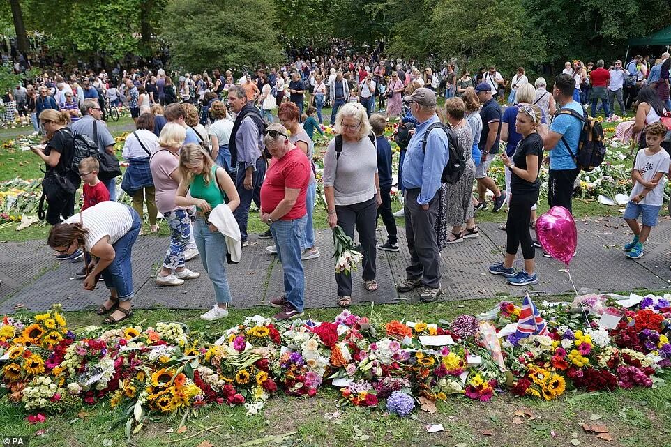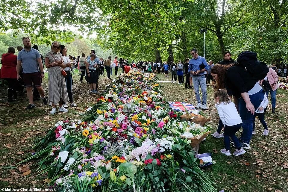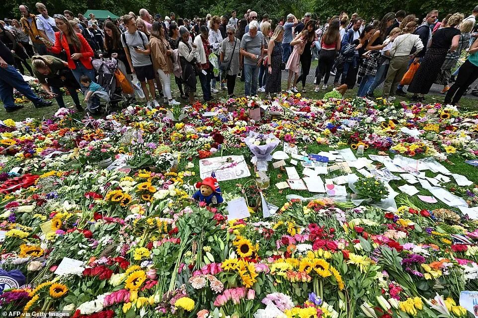 9月11日(周日),向已故女王伊丽莎白二世致敬的公众蜂拥至伦敦市中心白金汉宫旁的格林公园Green Park献花。