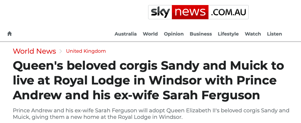 c。女王爱犬将由安德鲁王子及其前妻领养