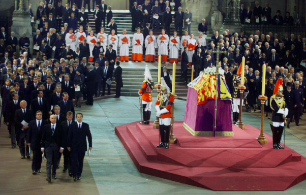 在英国,最后进行国葬的人是伊丽莎白二世的母亲伊丽莎白女王。2002年4月9日她的葬礼之前,估计有20万人前往威斯敏斯特大厅致意。