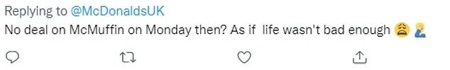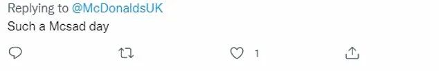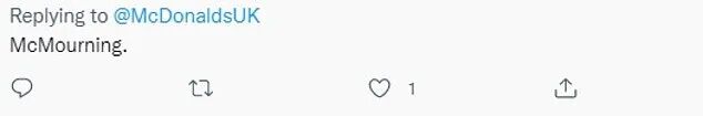 对麦当劳也不例外,一些顾客对这一决定表示失望,简单地用这个名字来表示该餐厅处于“McMourning”和“McSad”的状态。