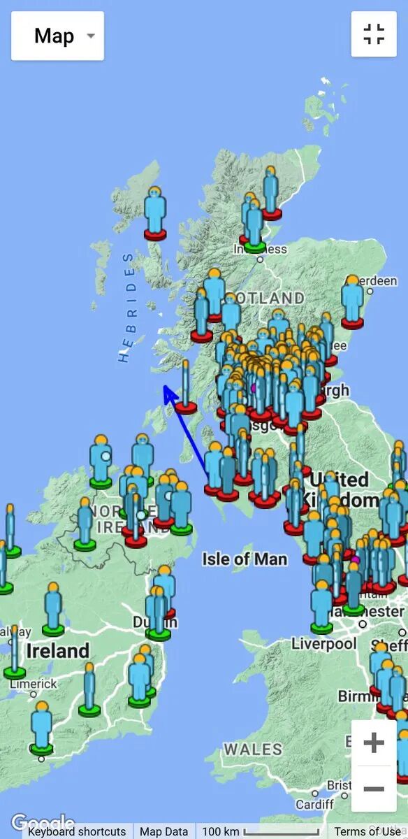 收到的报告分布 | 图片来源Twitter@UKMeteorNetwork