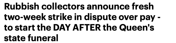 b。伦敦垃圾工人将在女王国葬后第二天罢工两周