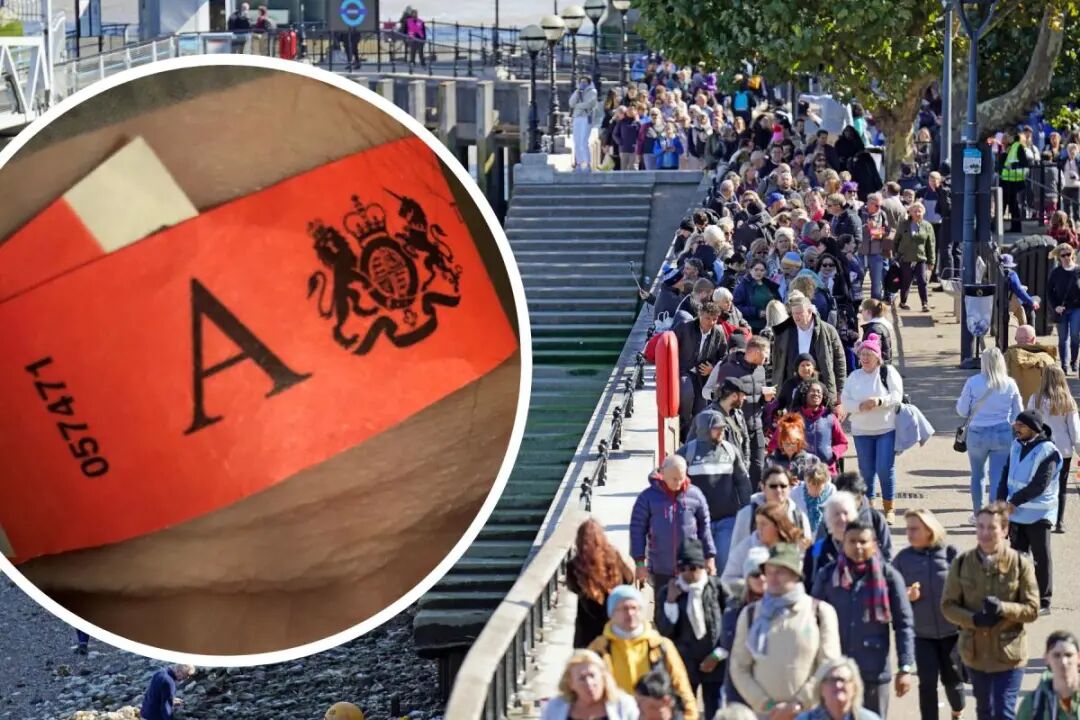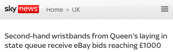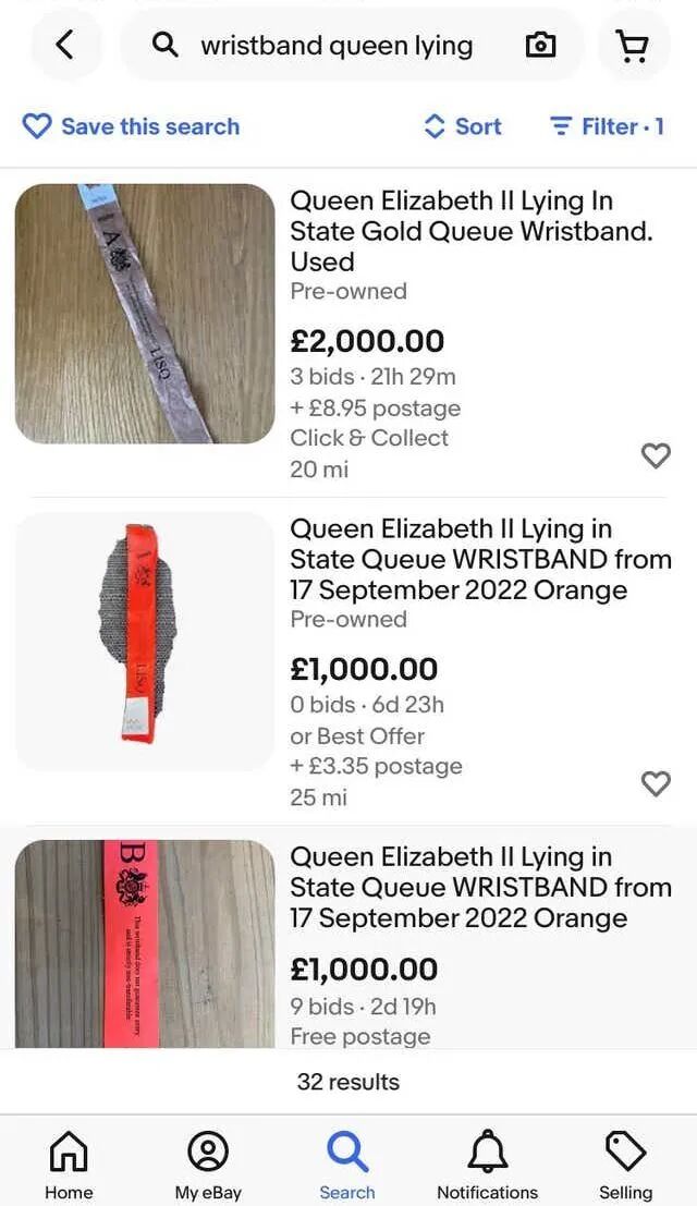 a。排队瞻仰女王灵柩手环价格已被炒至上千镑
