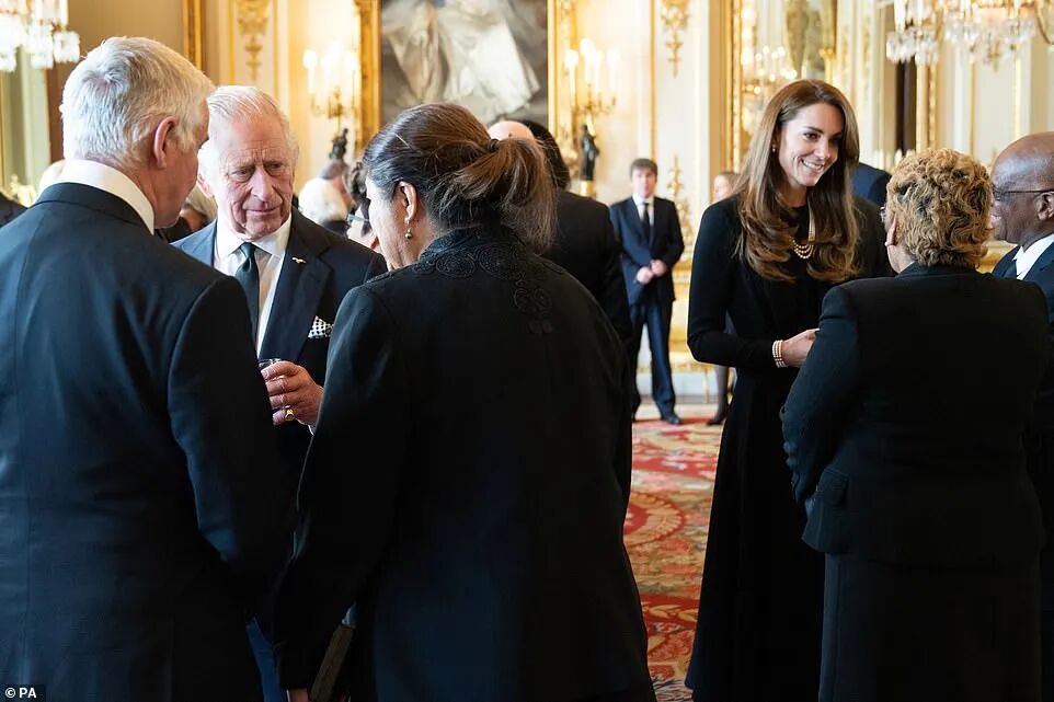 在与各国政要对话时,凯特表现得非常亲切,平易近人。她将手自然放在圣卢西亚总督的手臂上,以表达适当的安慰与回应。