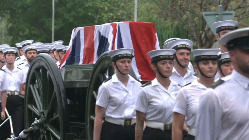 10:35——女王的灵柩将被抬至位于北门外的皇家海军国宾炮车上
