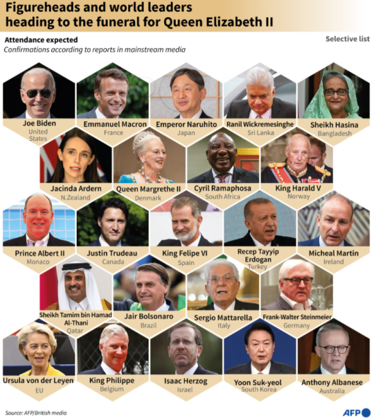 9月19日(周一)的伊丽莎白二世女王葬礼将是近年来最大的外交活动之一,预计将有约500名国家元首和外国政要出席。这将为特拉斯在上任不到两周的时间里提供一个与各国元首和高级别官员会面的机会。