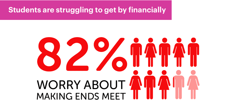 根据救助学生会Save the Student,一个为在校生和应届生服务的团体,发布的年度全英学生资金调查报告显示,82%的大学生担心在校学习期间资金入不敷出。