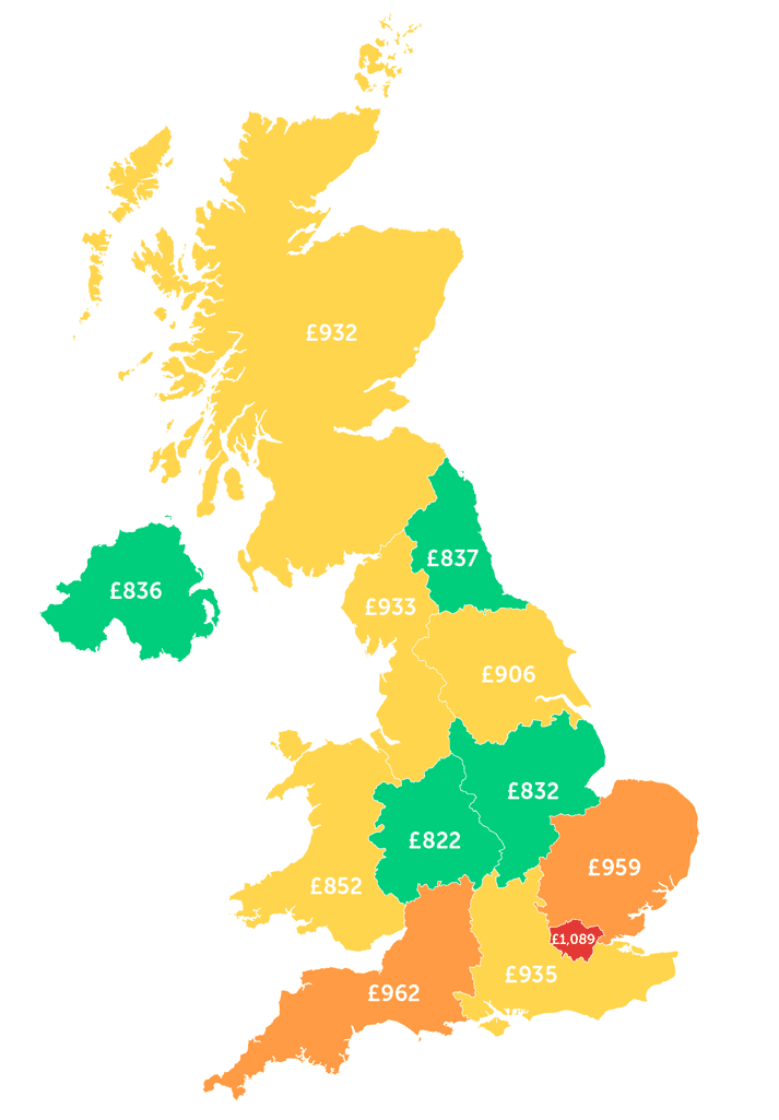 英国各地区大学生平均月开支 | 图片来源savethestudent
