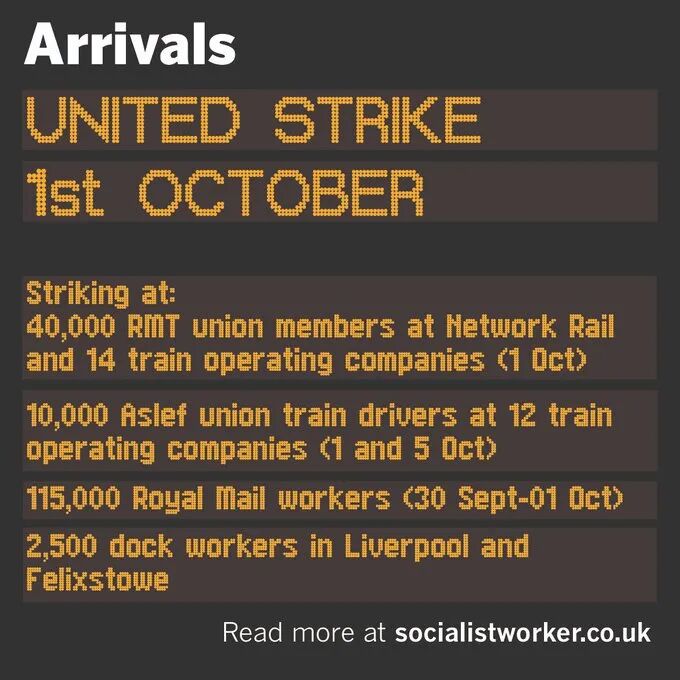 早前已确定的其他铁路系统罢工还有 10月1日(周六)和10月5日(周三) 的Aslef火车司机罢工。