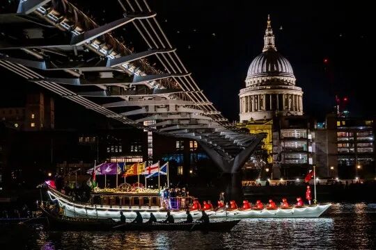 由150艘船组成的船队于9月24日(周六)晚,在伦敦泰晤士河上亮灯航行约90分钟,以纪念已故的伊丽莎白二世女王。