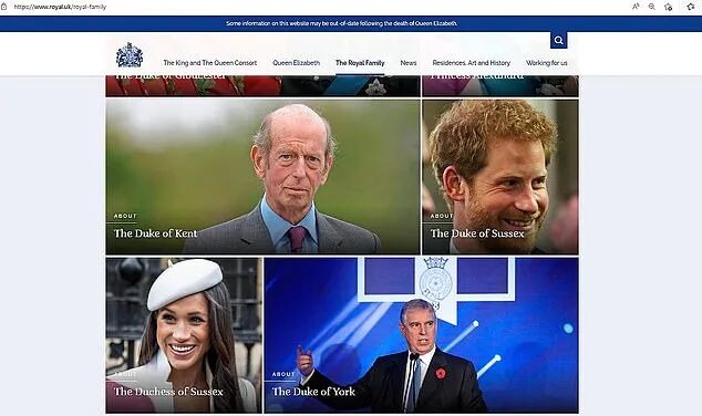 其他非工作皇室成员,如肯特郡的迈克尔王子Prince Michael和他的妻子,已从该网站上被完全除名。