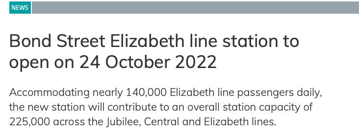 伊丽莎白线邦德街站Bond Street station的开通日期已确定。伦敦交通局TfL表示,位于伦敦中央核心区的该车站将从10月24日开始正常服务,但仍在等待最终批准。