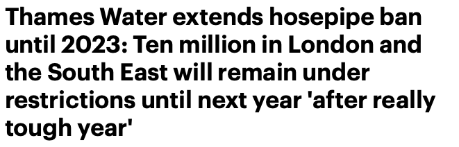 泰晤士河水务公司宣布,在英国经历了有史以来最干旱一年之后,该水务公司范围内的软水管禁令预计将被延长至2023年,以确保在水位恢复正常前,有足够的水量可供应日常生活。