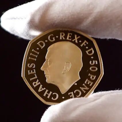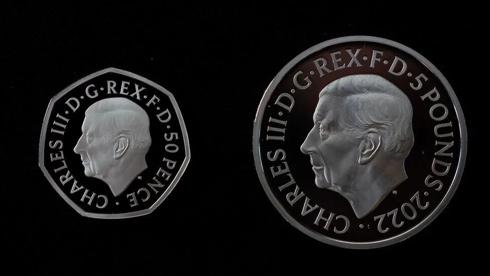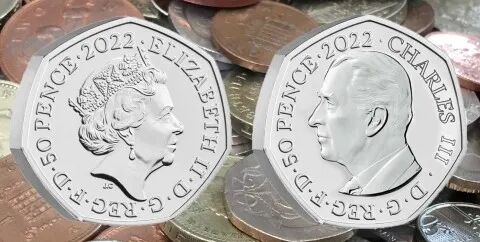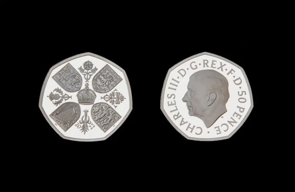 英国皇家铸币厂The Royal Mint日前公布了国王查尔斯三世的肖像硬币设计,将用于面额为50便士(50p)和5英镑(£5)的新发行硬币。