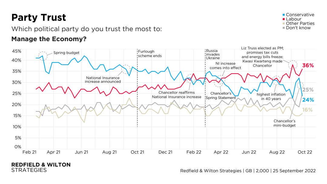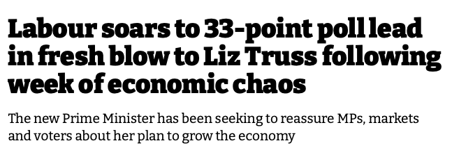 所有这三组民调数据都意味着,在过去的一周里,英镑暴跌、借贷更贵、工党在利物浦举行的年度会议,都在迫使选民的选择愈发向工党倾斜,将保守党推向困境。