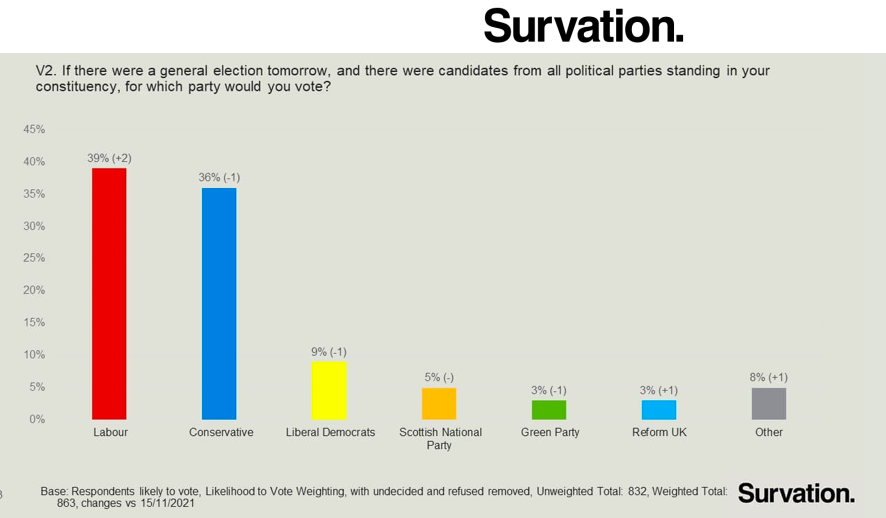 由Survation进行的另一项民意调查也显示,工党正以21%的优势领先,在选民中获得了49%的支持率,而保守党仅为28%。
