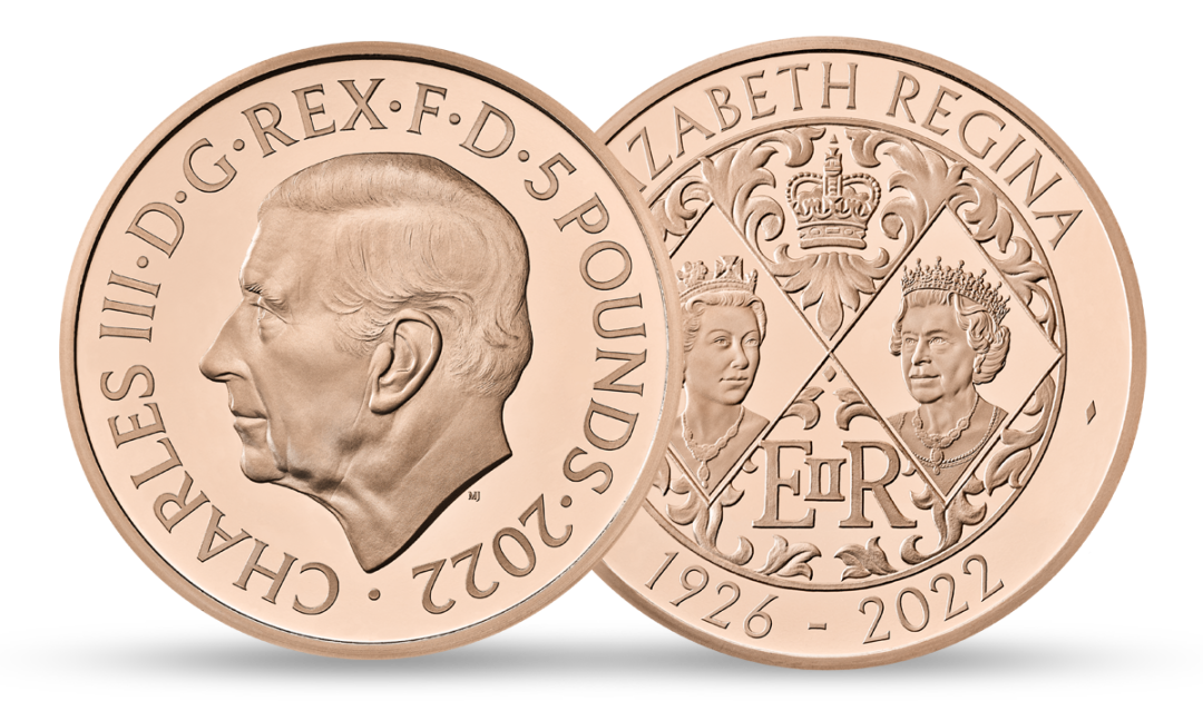 另一枚面值5英镑的新版硬币背面为新设计的伊丽莎白二世女王肖像,两张面孔分别记录了她从一位年轻君主到足以代表一个时代的国家元首的历程。