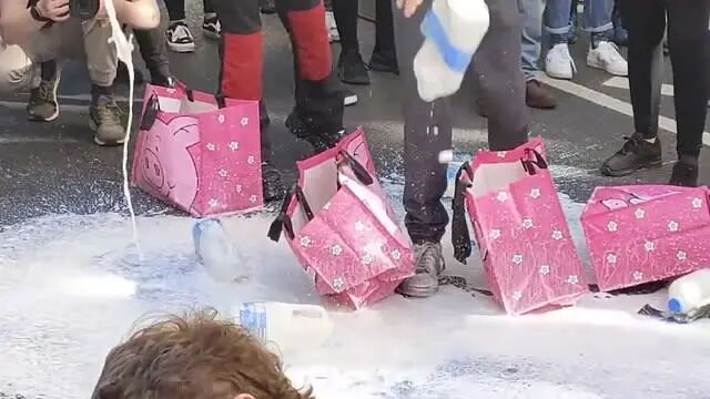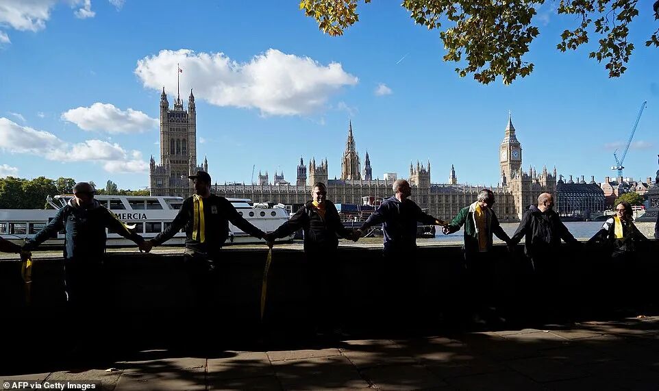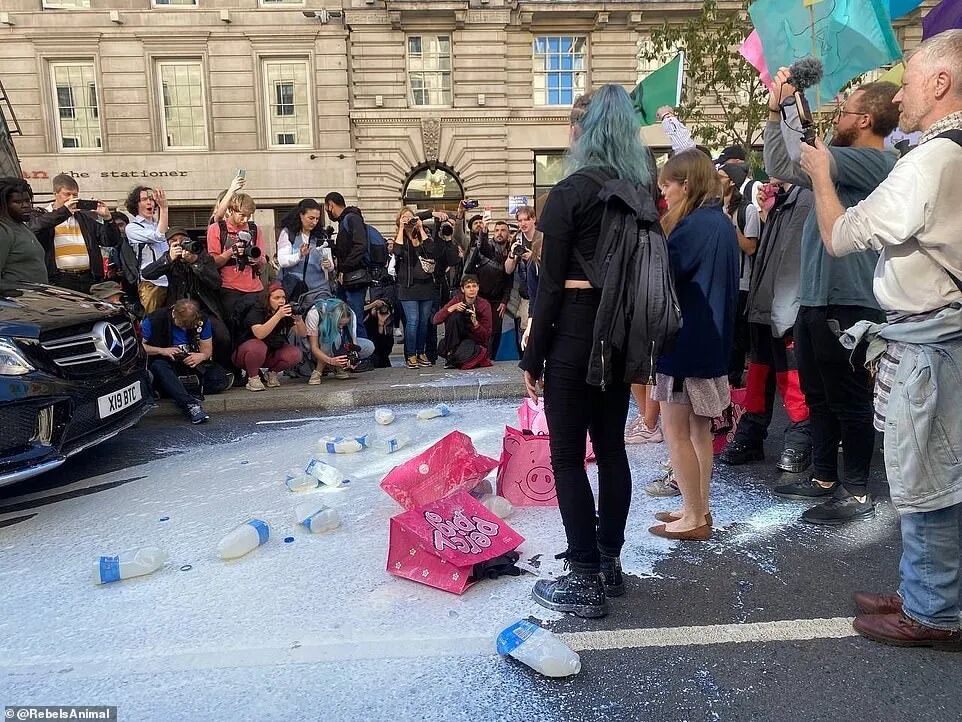 Just Stop Oil活动人士还与素食主义者组织Animal Rebellion的成员一起,在Pall Mall游行,希望引起人们对气候变化危机的关注。