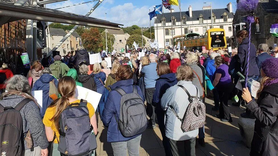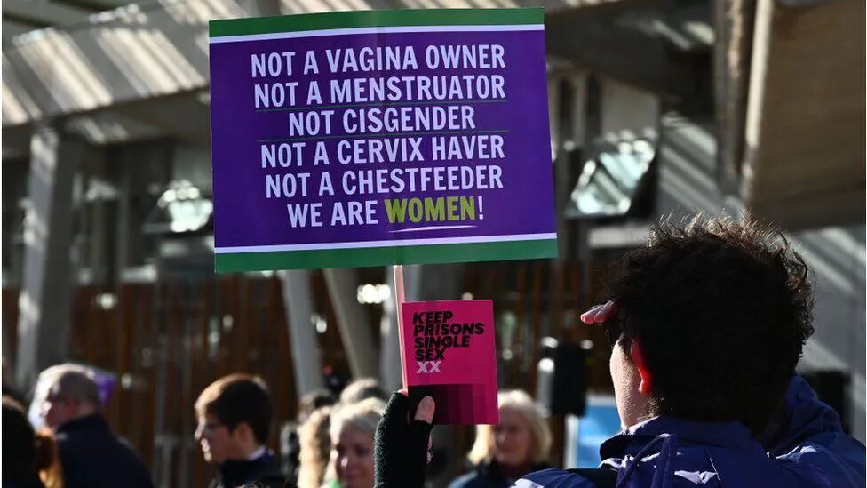 当时数百名示威者聚集在爱丁堡的苏格兰议会外,抗议苏格兰政府提出的跨性别法案改革。