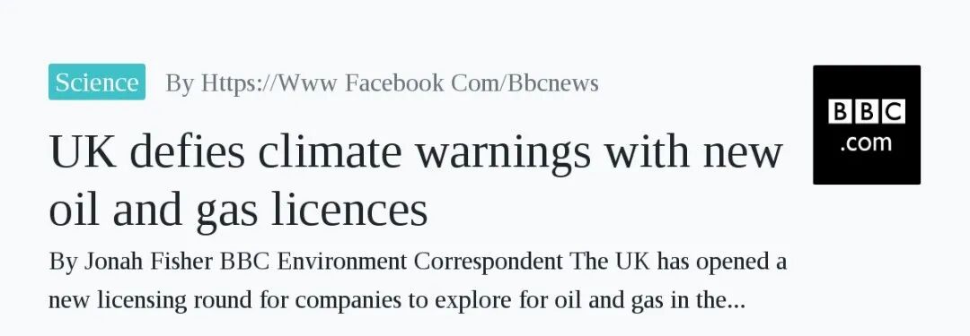d。英国无视气候警告,发放超100份北海油气勘探许可