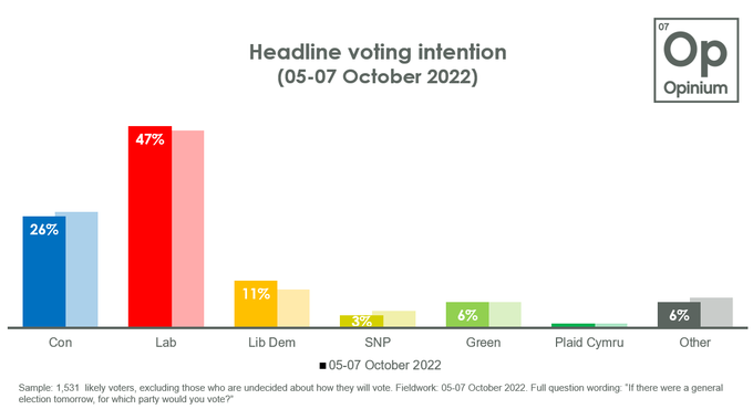 而对手工党继续以21个百分点的优势领先保守党,创下Opinium自开展民调以来为工党记录的最大领先优势。