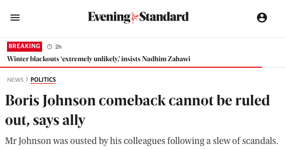 面对公众对特拉斯带领下保守党的不信任,更换领袖似乎只是时间问题。鲍里斯的一位亲密盟友就认为,“不能排除这位前首相卷土重来的可能性”。