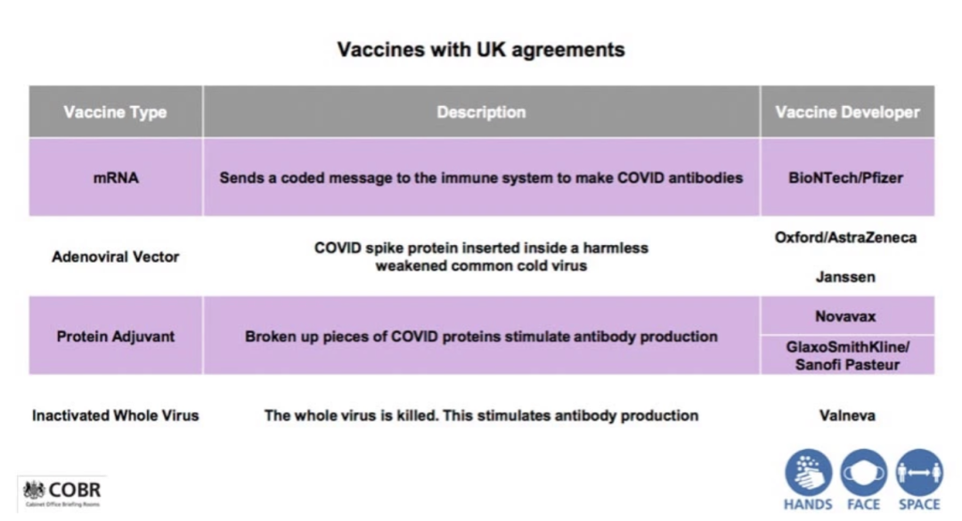 比如近日英国政府订购了4,000万剂量的Pfizer公司90%有效性疫苗,虽然该疫苗目前进展最佳也最受欢迎,但英国政府不会在任何安全方面进行妥协。