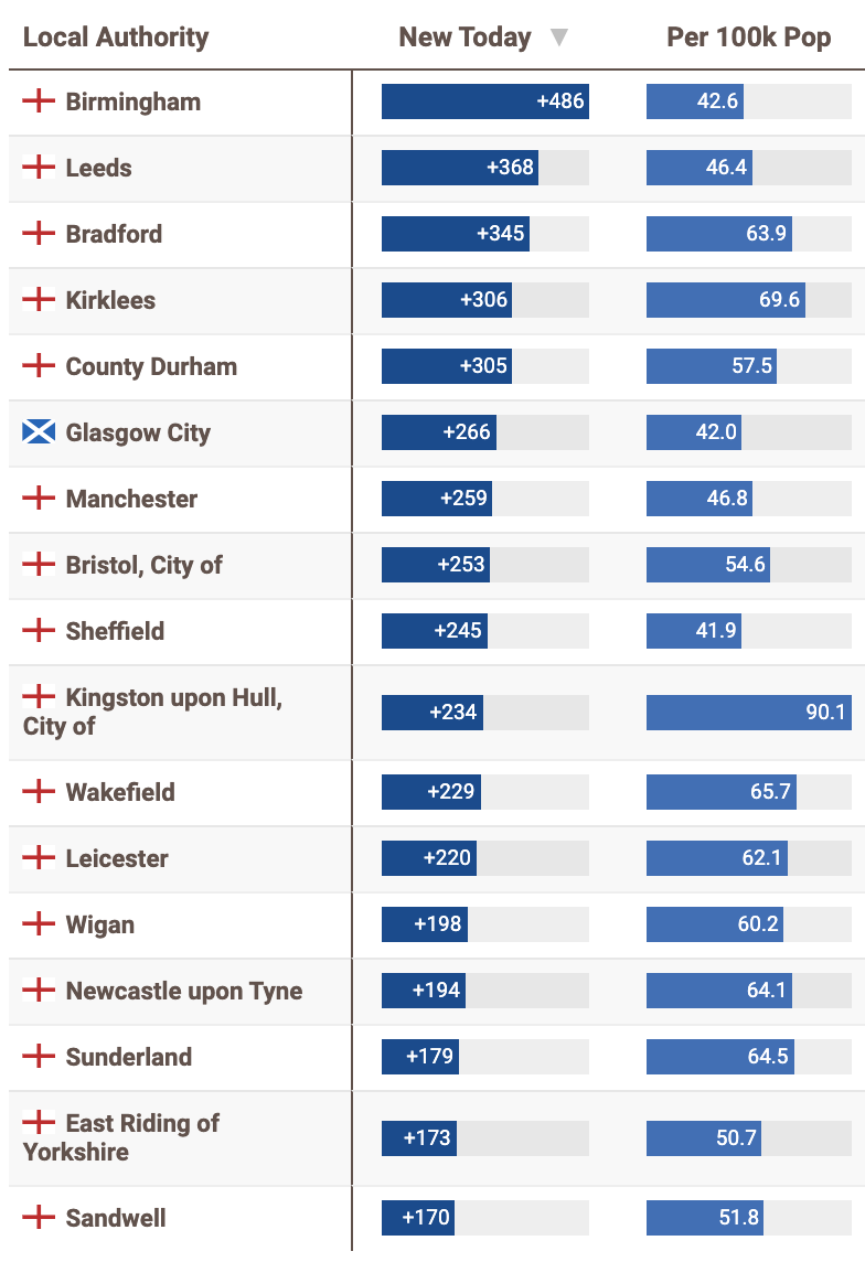 英国疫情实时地图 / 城区具体数据