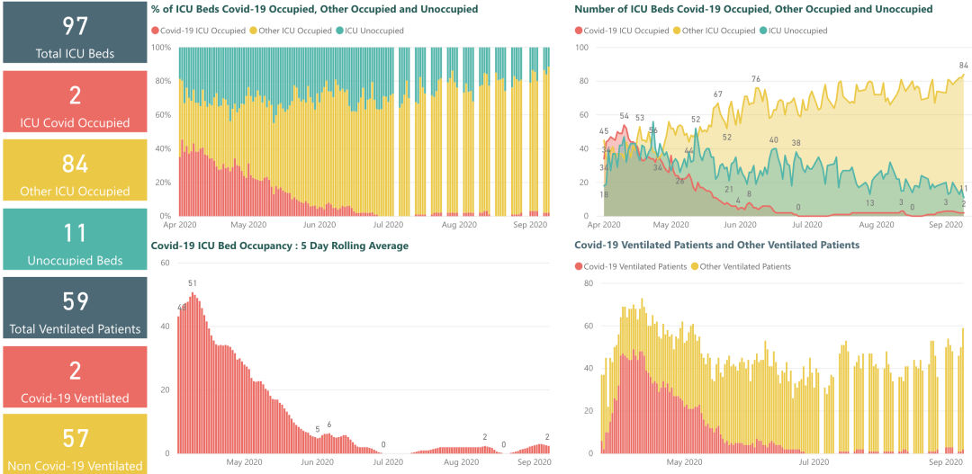 9月9日数据:住院的确诊新冠患者共18人(=),已出院的确诊新冠患者1,577人(=),治愈率目前为99.8%。重症ICU疑似/确诊新冠患2人(=),空余的重症ICU床位11张(-5)。