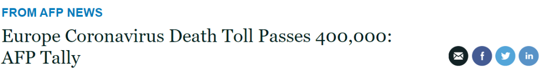 目前欧洲上报的死亡人数已经超过40万例:总确诊数17,606,370,死亡400,649人,其中36,147例发生在过去一周,成为疫情开始以来欧洲一周内累计死亡数最高的一周。