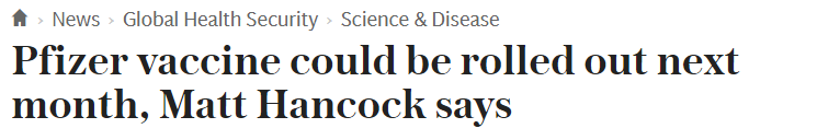 英格兰卫生部长Matt Hancock表示,Pfizer公司的疫苗可能最快12月在英国普及,大规模的普及工作将在新年进行。但落实接种疫苗的完整程序并不容易。