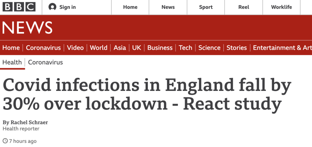 一项重要研究表明,英格兰的新冠病毒感染率R值在锁定期间下降了约1/3。其中,一些受疫情影响最严重的地区得到了最大程度的改善