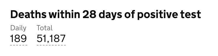 目前英格兰地区使用呼吸机的新冠患者有1,241人(+37);病亡新冠患者总计51,187人(+189)。