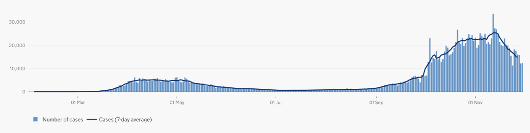 英国日增确诊案例趋势图