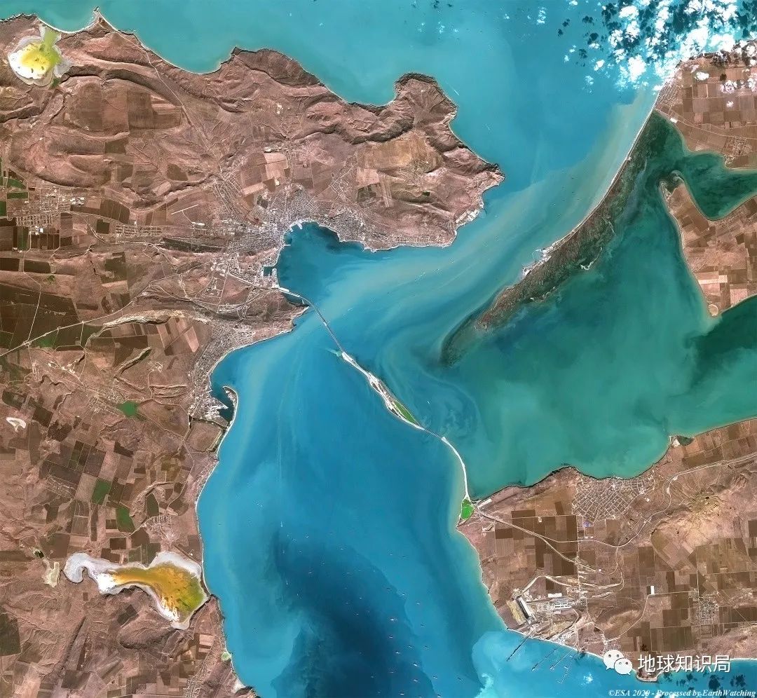 刻赤海峡和刻赤海峡大桥(图:Sentinel-2)▼