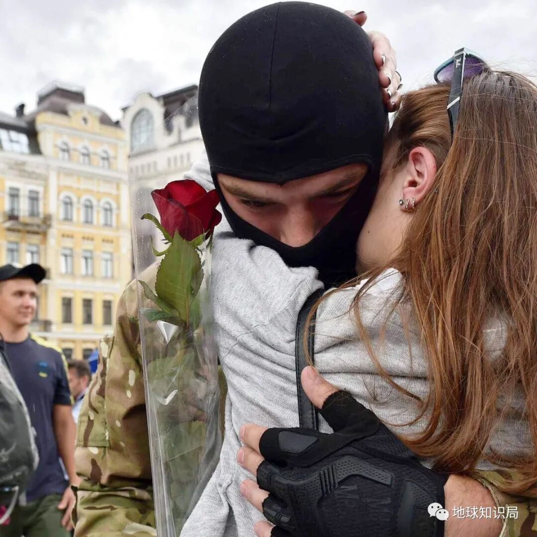 (乌克兰士兵和女友道别,图:Twitter)▼