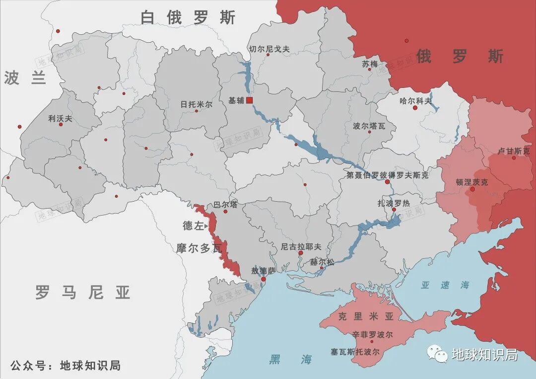 ③ 俄罗斯直接出兵,从已经控制的克里米亚和卢顿两个“共和国”出发,一路向西打,最终将战线稳定在第聂伯河一线,彻底占有乌东地区,并威胁乌克兰首都基辅和乌西几州,这种级别的冲突就已经完全脱离了小打小闹的级别。