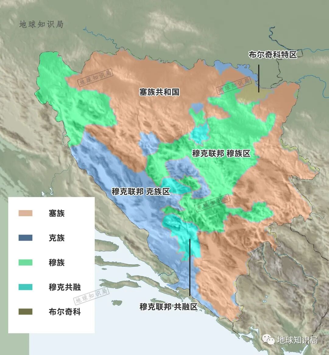 波黑国内各族的势力分布都被很尴尬得分开了 ▼