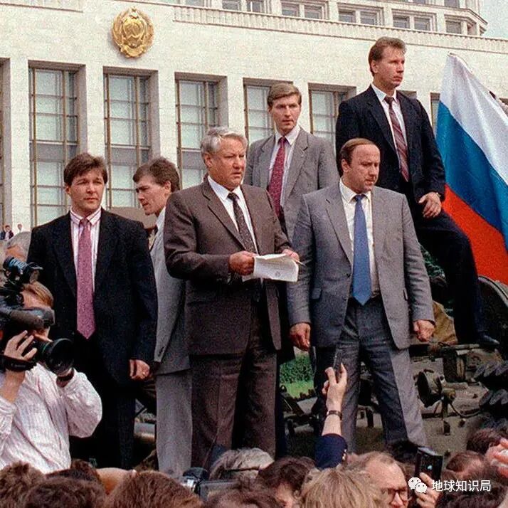 (中间手拿白纸者为叶利钦,图:Britannica)▼