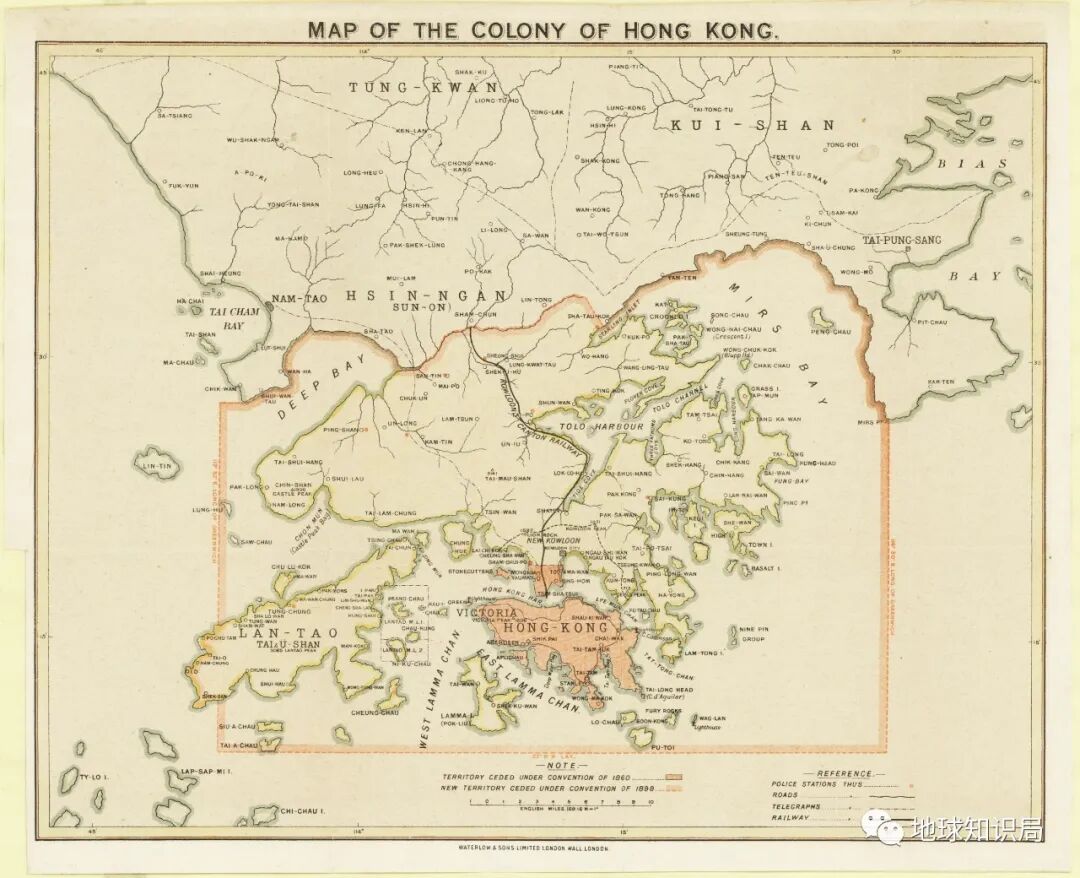 1898年,英国政府通过《展拓香港界址专条》,以“租借99年”的名义占领了九龙界限街以北、深圳河以南的土地以及附近的200多个小岛,由于这片地区此前并没有命名,因此英国殖民者和清政府皆以“新界(新的边界)”来称呼。加上之前侵占的香港岛和九龙,今日意义上的香港就此诞生。